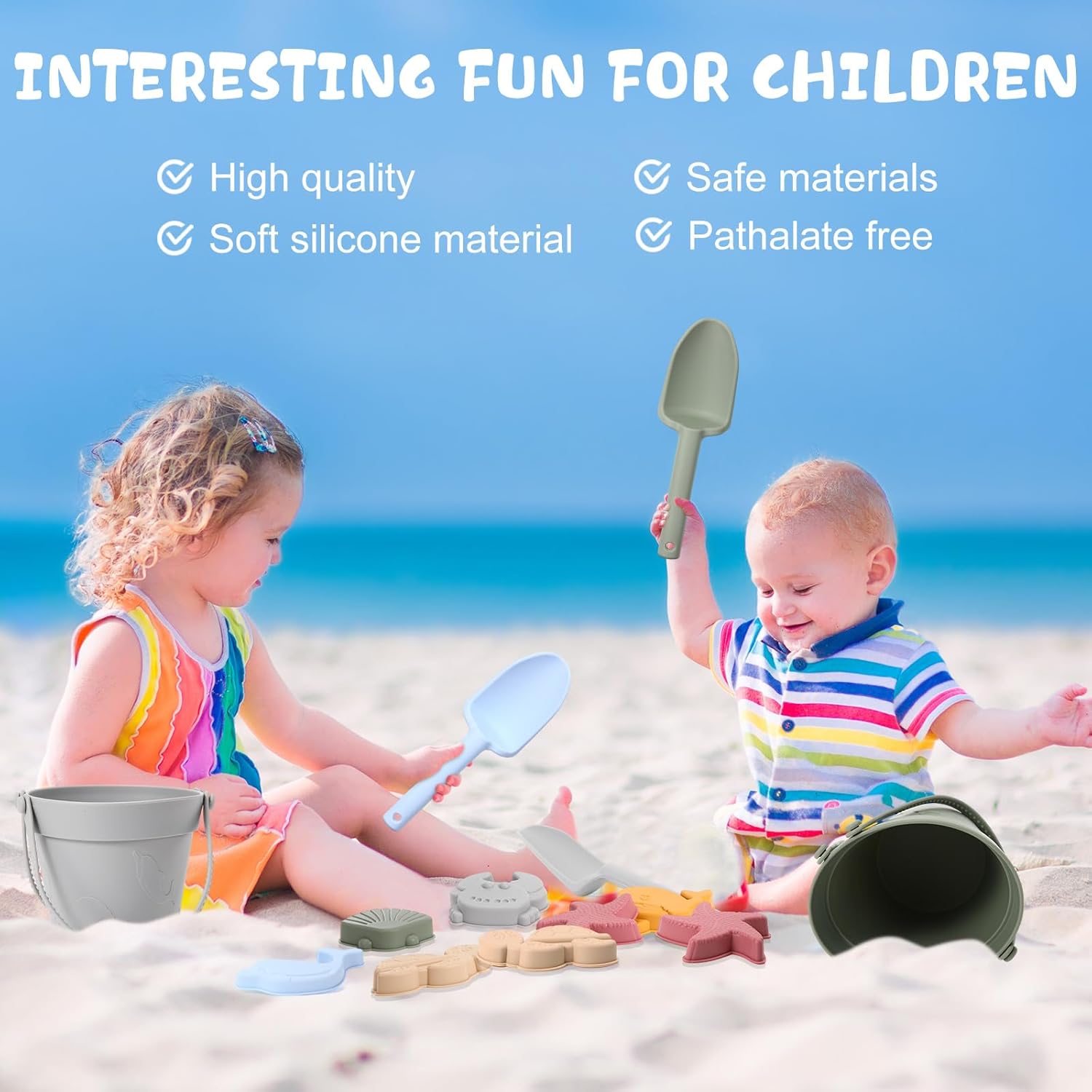 Upgrade beach play with our 13-piece silicone beach toy set—clean, durable, and kid-friendly.