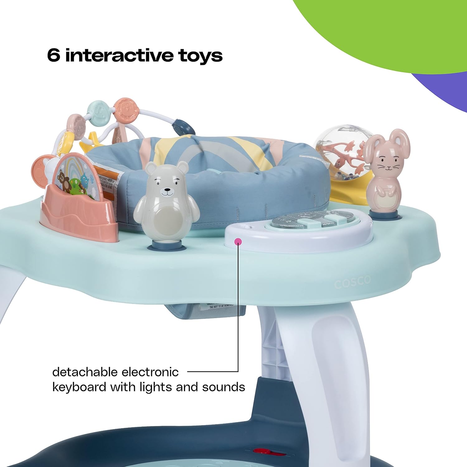 - Interactive activity center designed for babies and early toddlers
